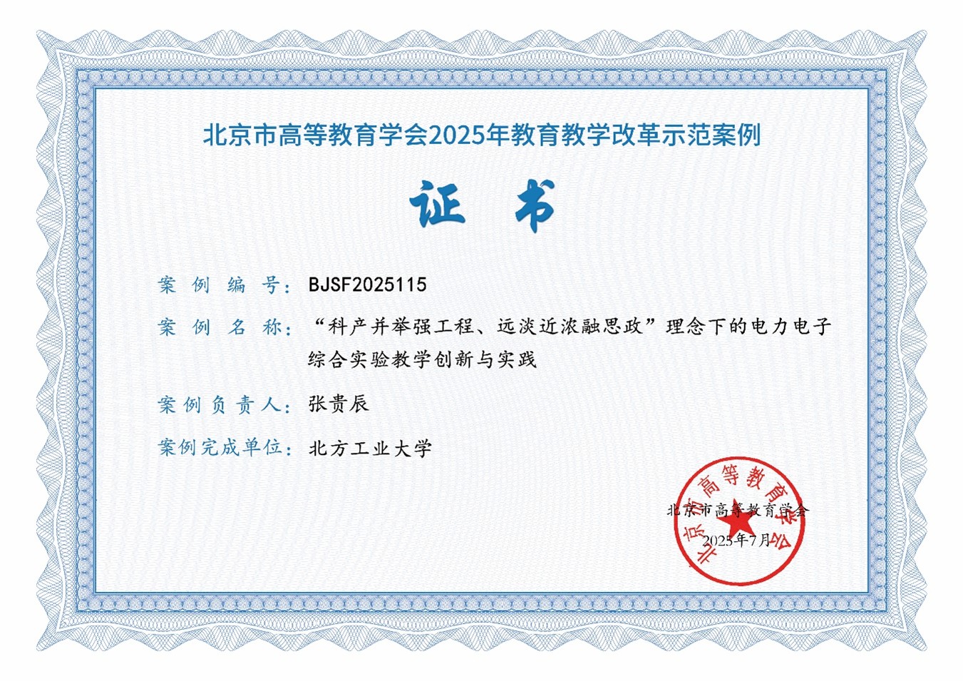“科产并举强工程、远淡近浓融思政理念下的电力电子综合实验教学创新与实践”入选2025年北京高教学会公司产品改革示范案例;“多学科交叉融合背景下储能专业本科实践教学体系的构建与实施研究”获批北京市高等教育学会2025年面上课题;“产教融合视角下储能专业新形态教材体系构建研究与实践”获批北京市高等教育学会2025年专项重点课题;获第四届全国高校电气类专业青年教师实践教学设计创新大赛三等奖1项。多项教改成果落地,为持续优化人才培养体系奠定扎实基础。