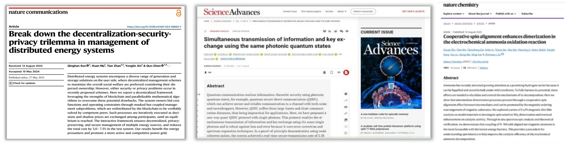 顶刊论文产出丰硕,陈群教授在《自然・通讯》论文破解分布式能源系统三重困境,郑超教授成果刊发于《科学进展》,朱思远副教授在《自然・化学》论文揭示氢能高效转化新机制。