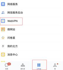 2.移动端:通过企业微信—工作台—WebVPN,可以直接进入不再需要账号密码。